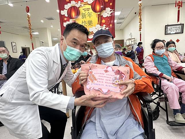 【勁報記者于郁金/嘉義報導】喜迎金蛇迎春賀新年!臺中榮總嘉義分院附設護理之家於1月22日(三)農曆年前舉辦「歲末迎春慶團圓,金蛇迎春賀新年」活動,在熱鬧喜慶的氛圍中,醫院院長陳正榮親自率領護理部主任張蘭英及護理之家團隊同仁,關懷住院榮民(眷)及長輩,並獻上誠摯新春祝福。
